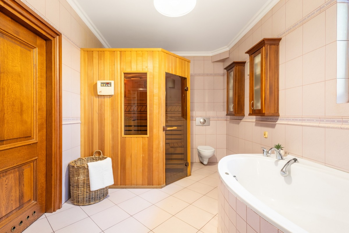 Na szczególna uwagę zasługuje prywatna sauna, która pozwala stworzyć własne SPA bez wychodzenia z domu.