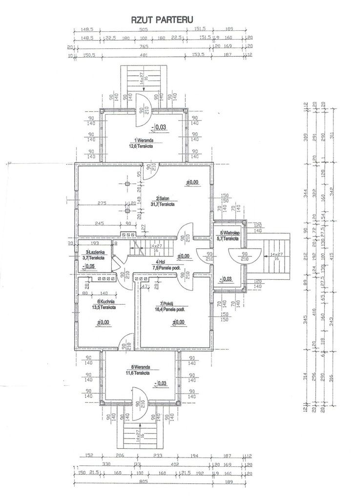 Dom o powierzchni 214,4 m² – układ pomieszczeń: