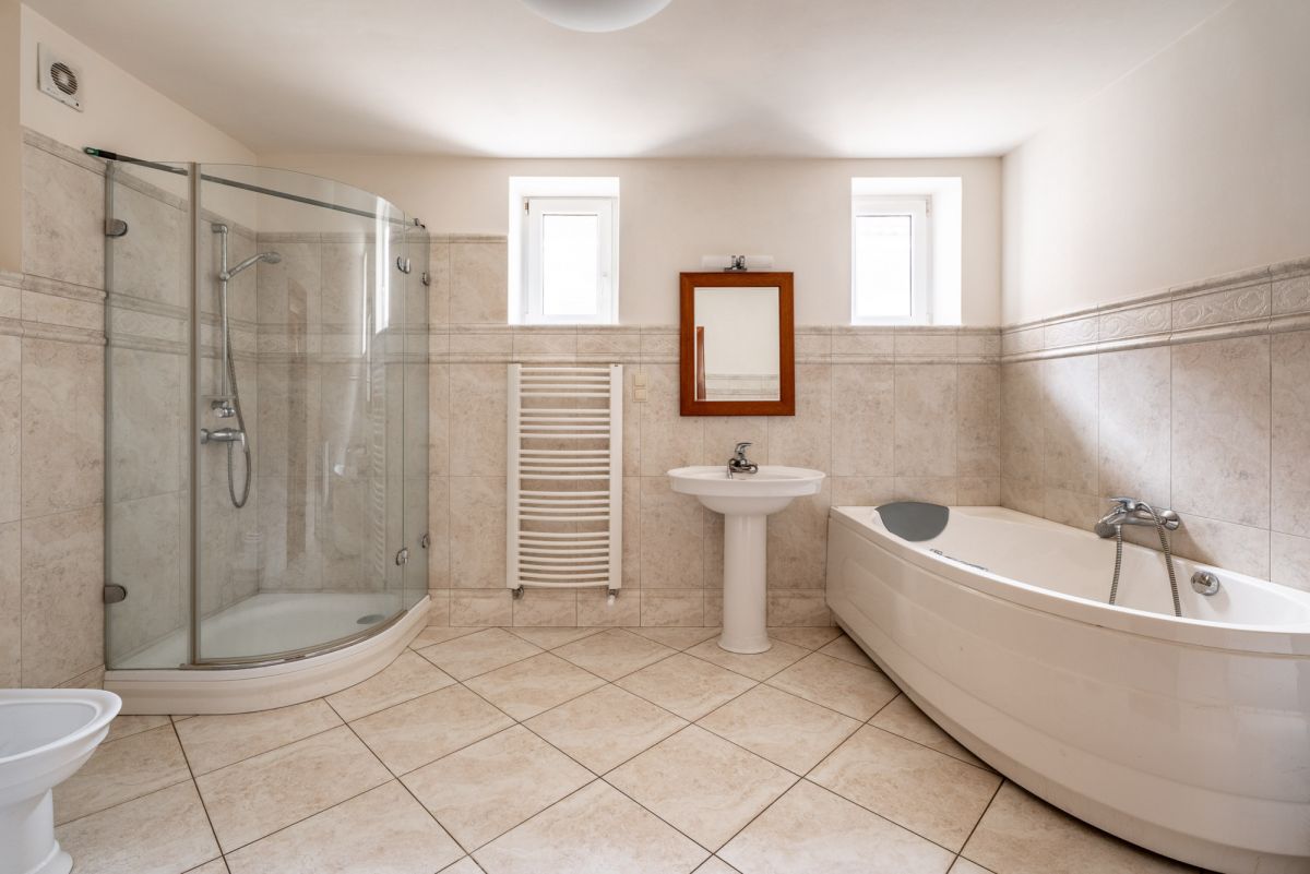* łazienka z wanną i prysznicem,