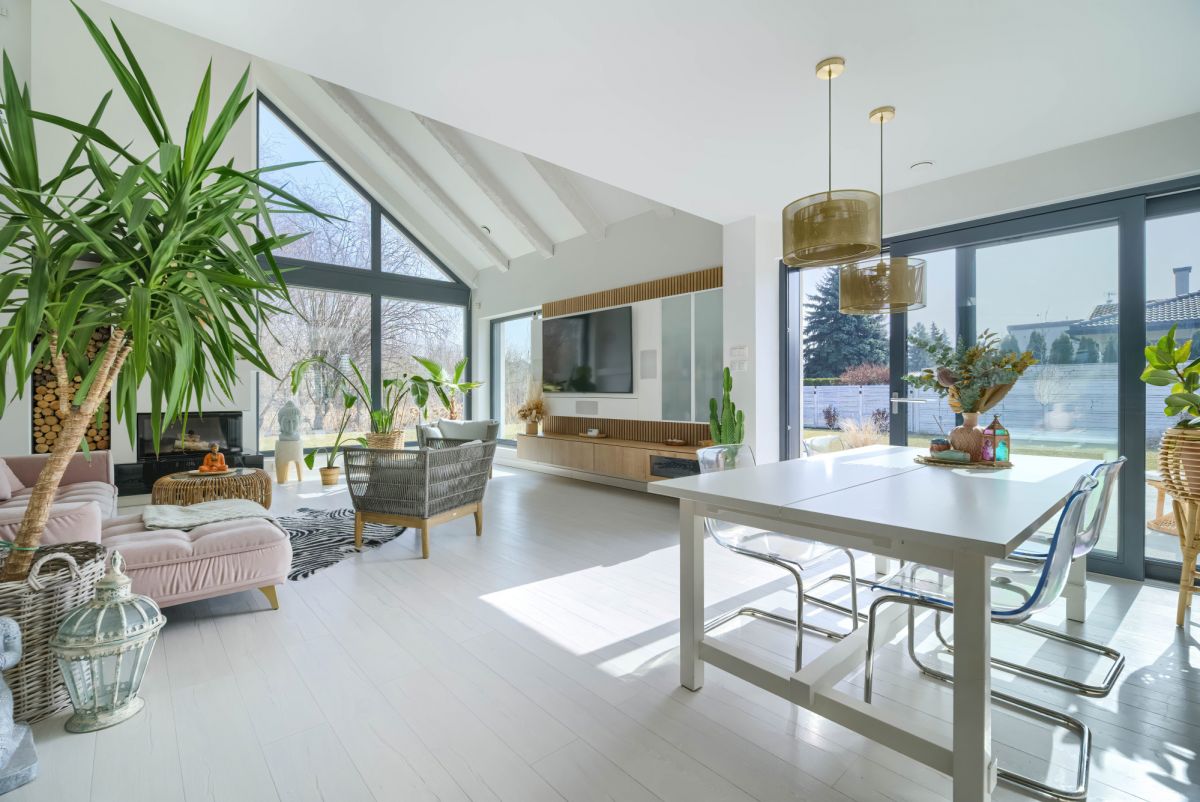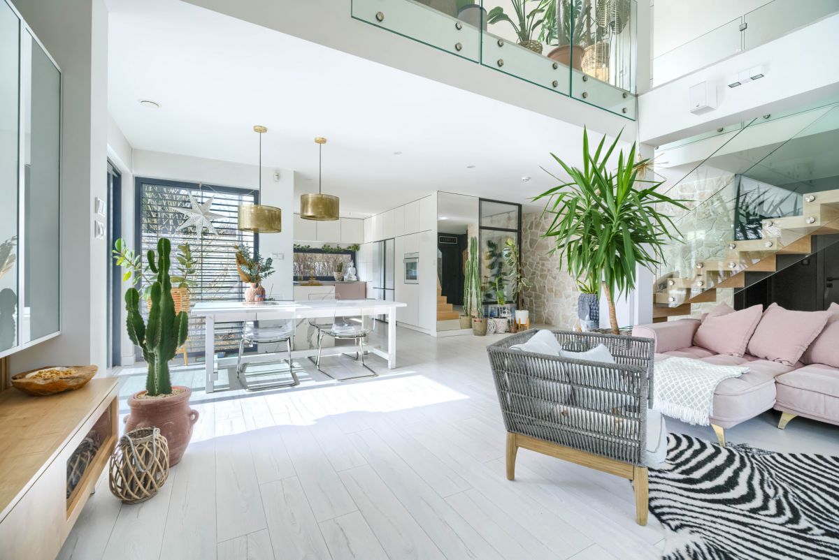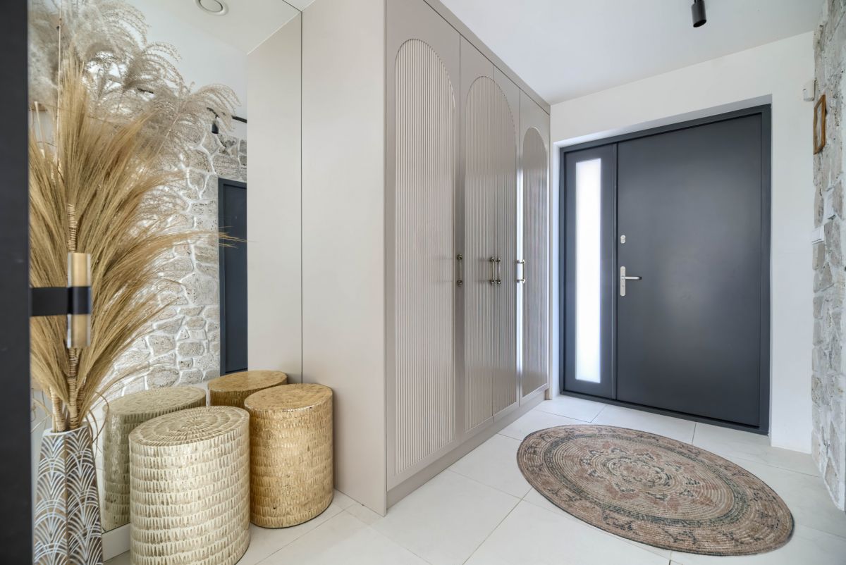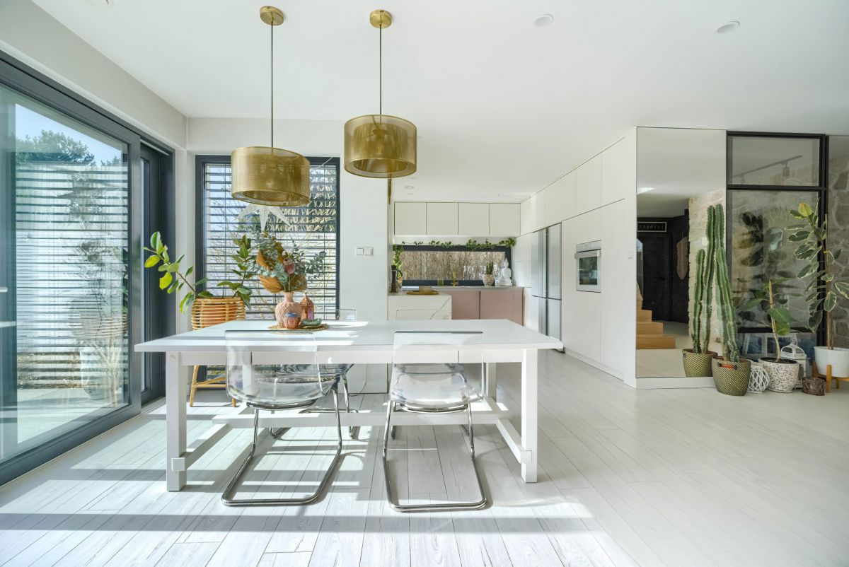 Dom posiada wygodny podział na strefę dzienną i prywatną: