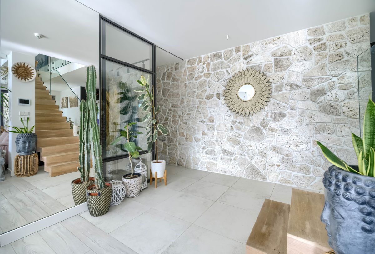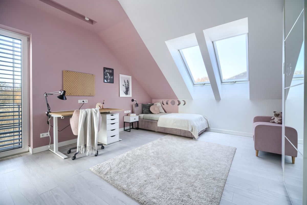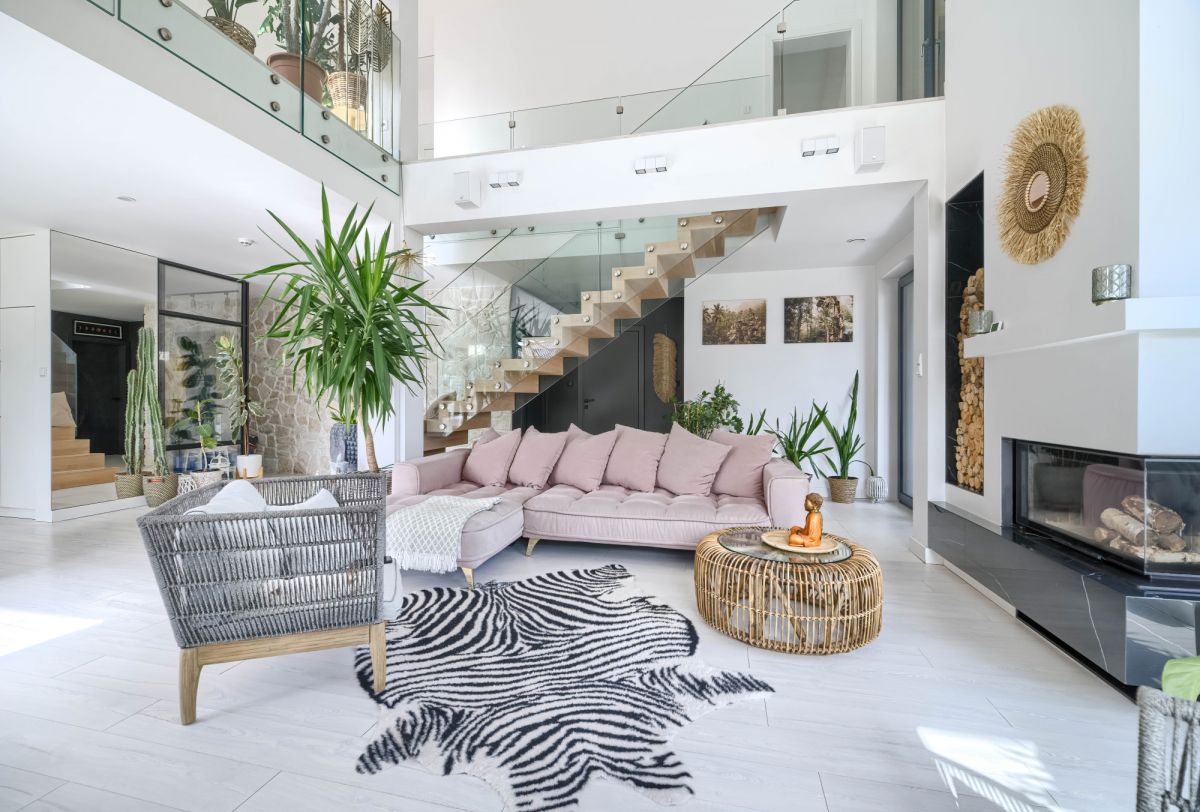 Dom posiada wygodny podział na strefę dzienną i prywatną: