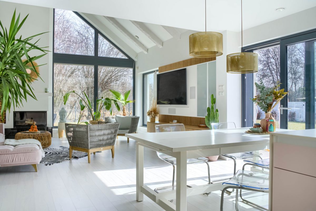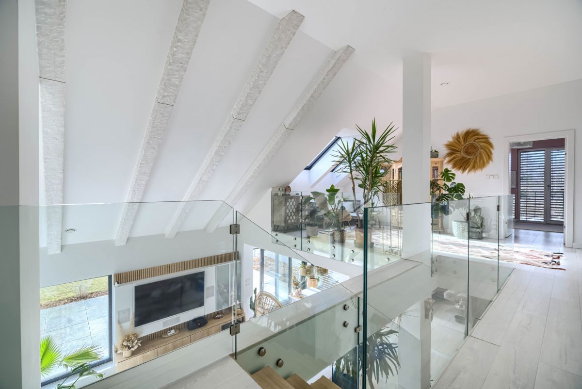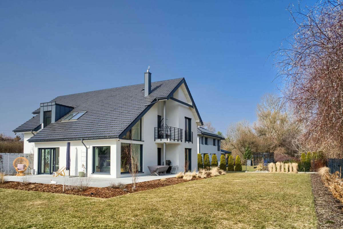 Nowoczesna architektura z przytulnym klimatem tworzy idealne połączenie stylu i funkcjonalności, a jasne, przestronne wnętrza z dużymi przeszkleniami zapewniają komfort i wyjątkową atmosferę w całym domu.