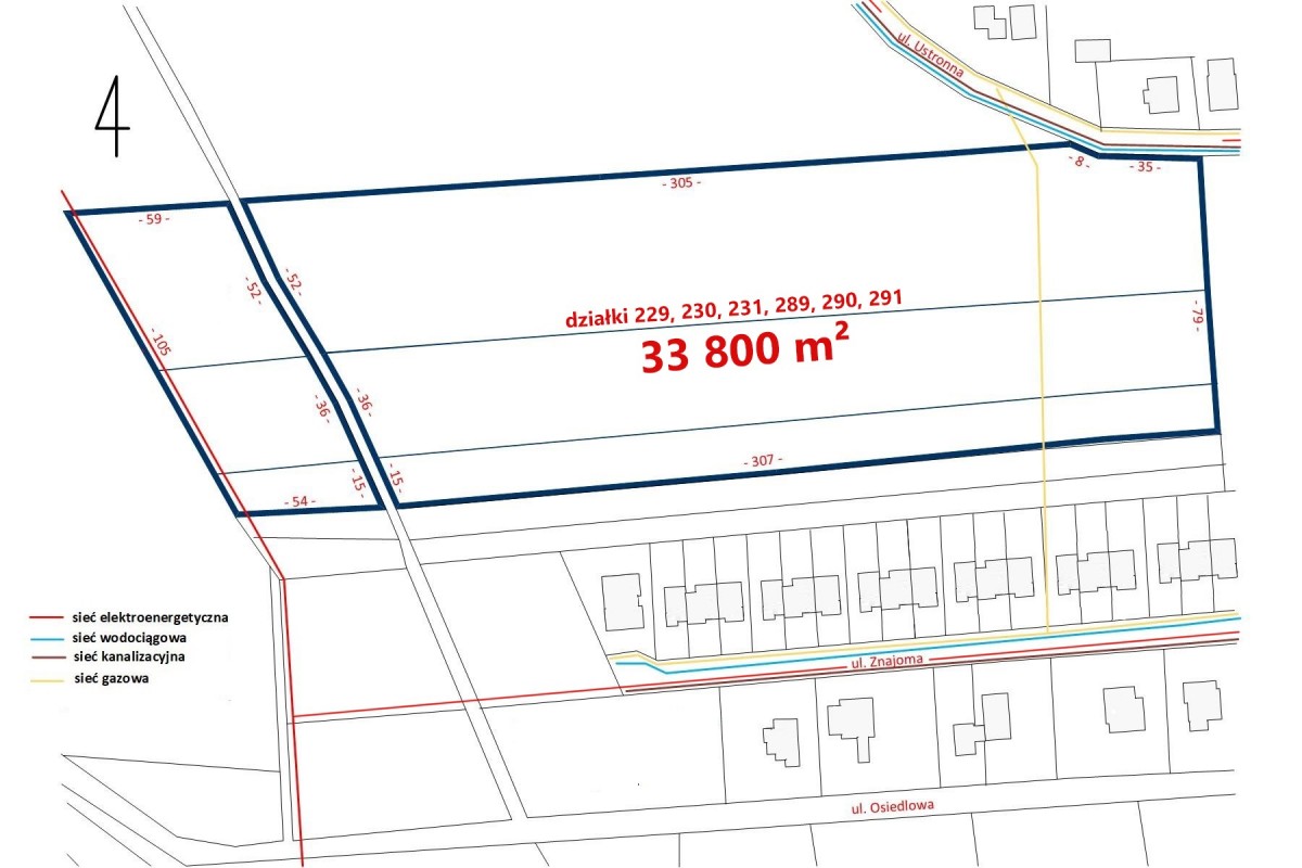 W ulicy Ustronnej sieć energetyczna, gazowa, kanalizacyjna i wodociągowa.