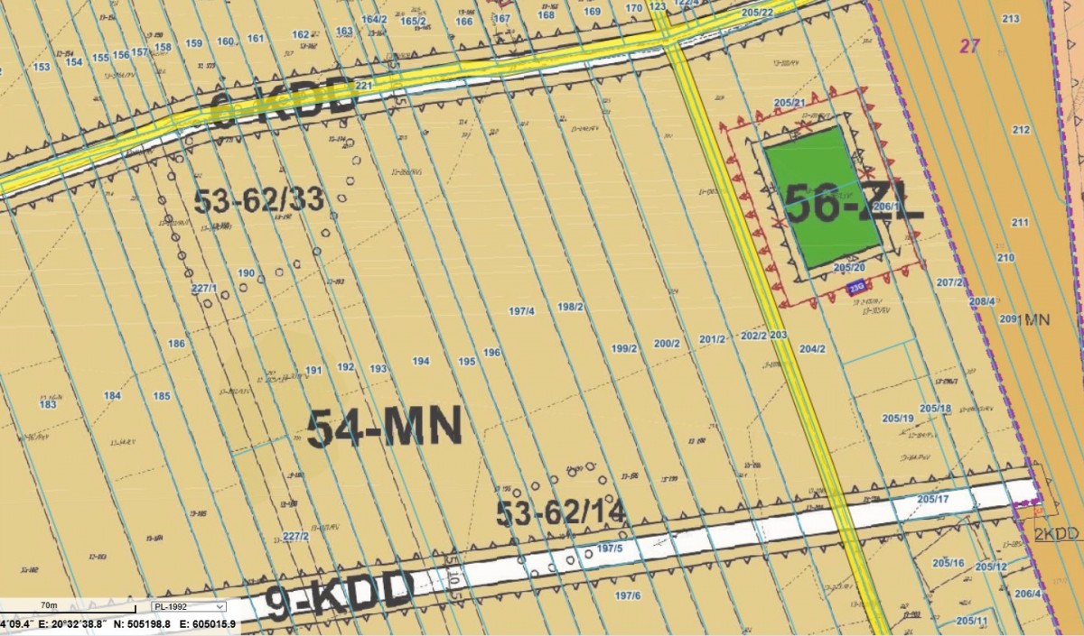 Nieruchomość objęta miejscowym planem zagospodarowania przestrzennego - oznaczenie 54-MN.