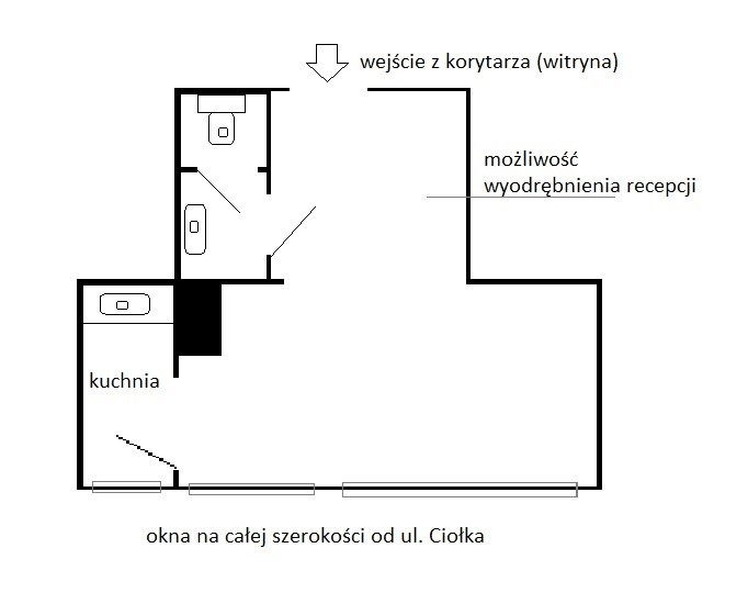 W lokalu można urządzić m. in. biuro niewielkiej firmy lub sklep internetowy. Istnieje możliwość korzystania ze wspólnego korytarza i urządzania w nim poczekalni dla klientów.