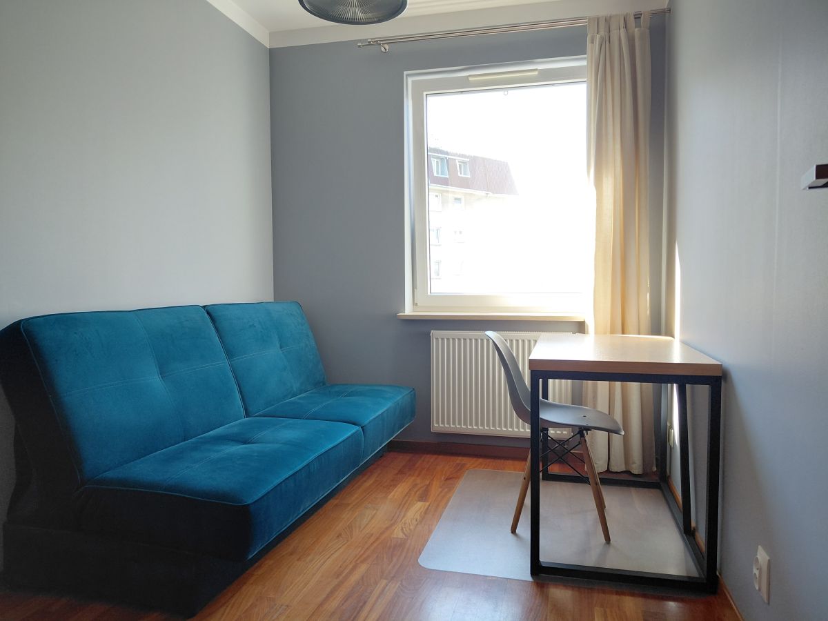 Z dużego pokoju można wyjść na balkon o pow. ok. 5 m2 (ekspozycja wschodnia). Mieszkanie jest umeblowane.
