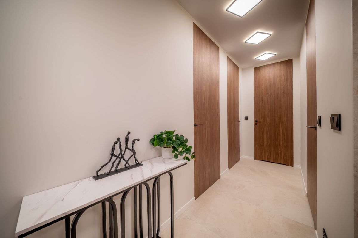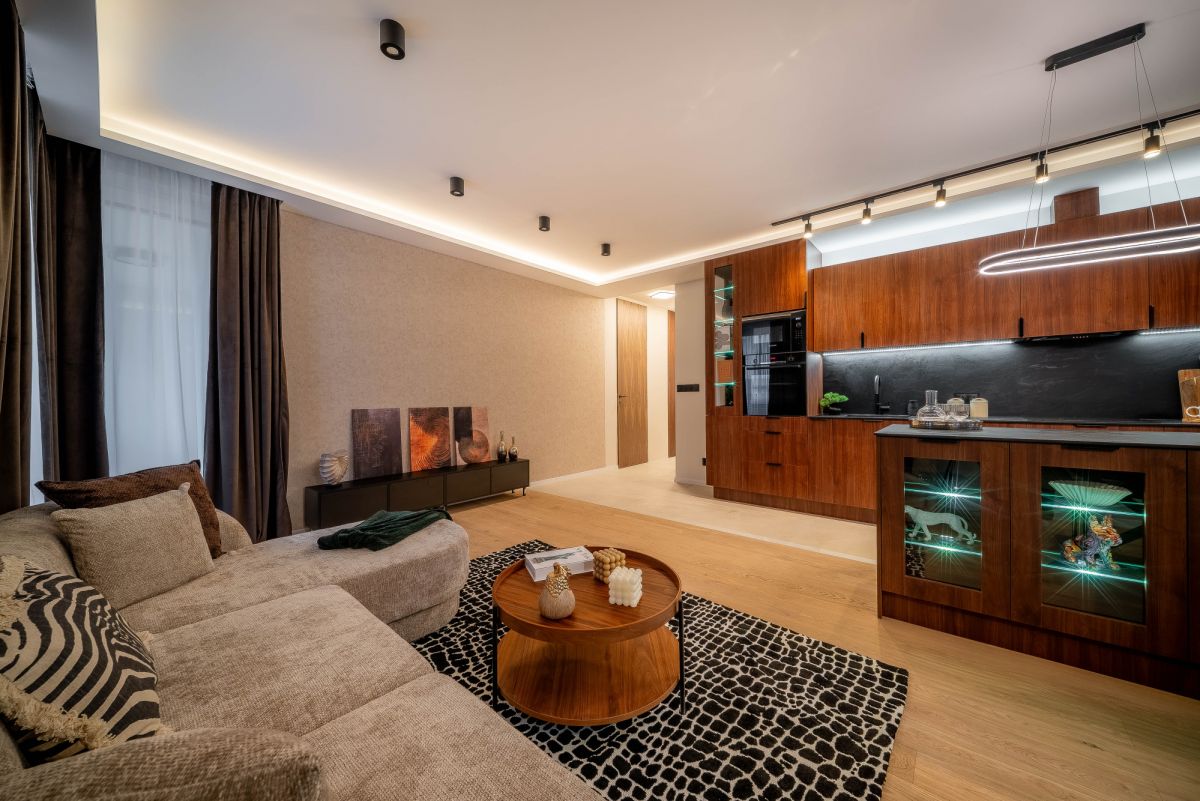 Apartament przeszedł generalny remont, przy użyciu materiałów wysokiej klasy, zadbano o ciekawy design i ponadczasowe dodatki.