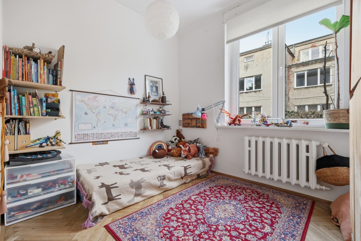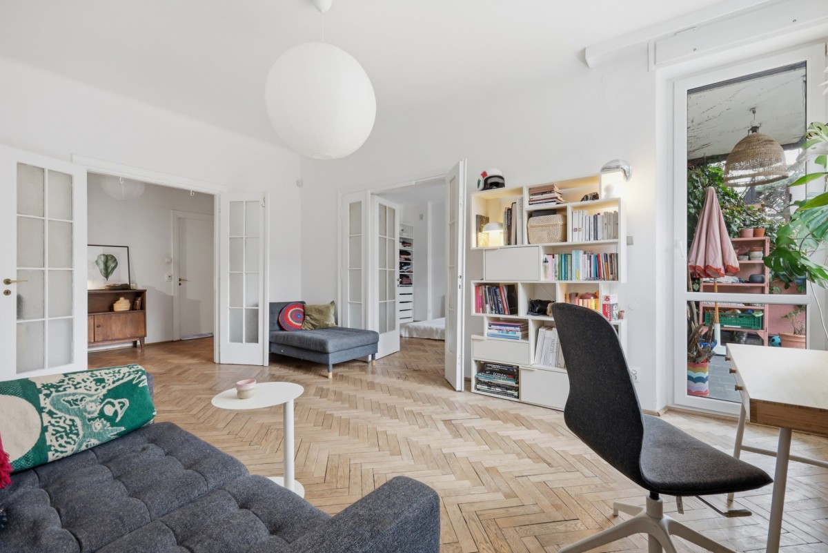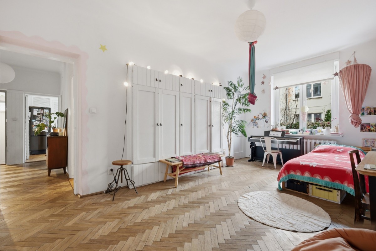 W mieszkaniu zachowane stare stolarki drzwiowe, a także parkiet w jodłę francuską.