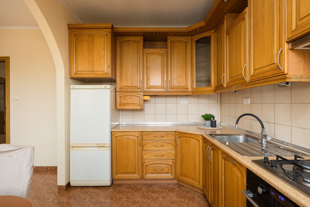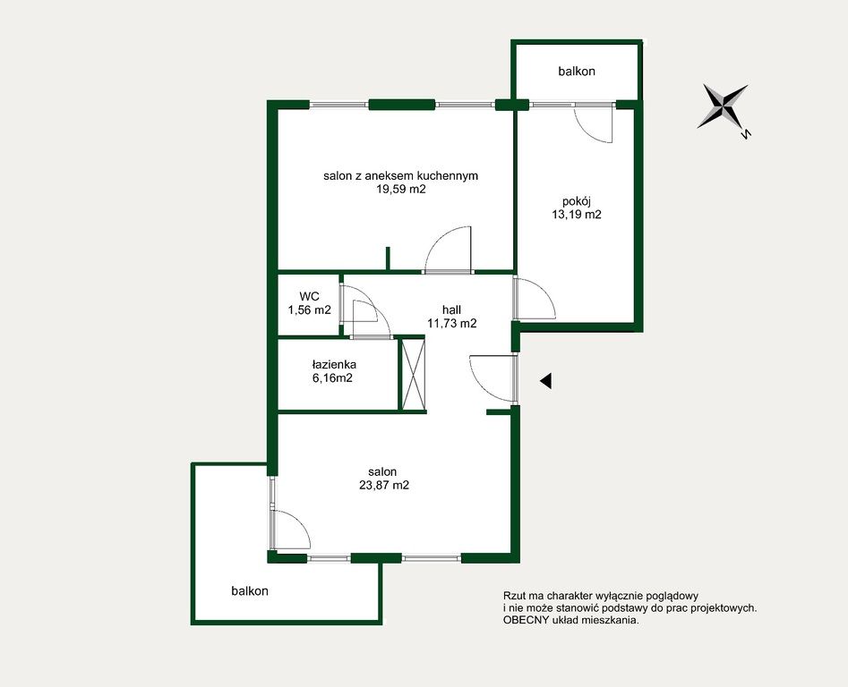 Lokal znajduje się na 2 piętrze w budynku z windą. Mieszkanie do remontu. Powierzchnie pomieszczeń: kuchnia 9,22 m2, salon z balkonem 23,87 m2, pokój 10,37 m2, pokój z balkonem 13,12 m2, łazienka 6,16 m2, WC 1,56 m2, hall 11,73 m2.