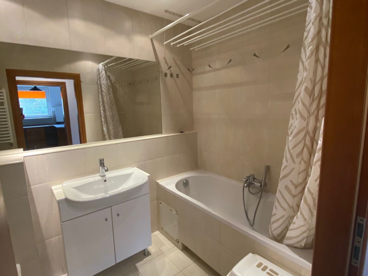 W skład tego przestronnego mieszkania wchodzą: 2 pokoje, duża łazienka z wanną i pralką, kuchnia w pełni wyposażona, przedpokój oraz garderoba.